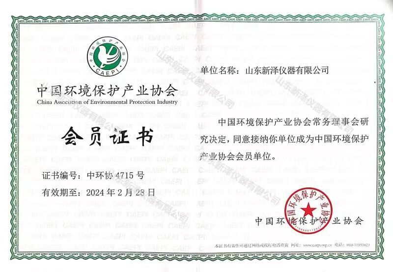 通過嚴格的資料審核以及業績評估,山東新澤儀器有限公司經中國環境保護產業協會常務理事會研究決定,正式成為中國環境保護產業協會會員單位。