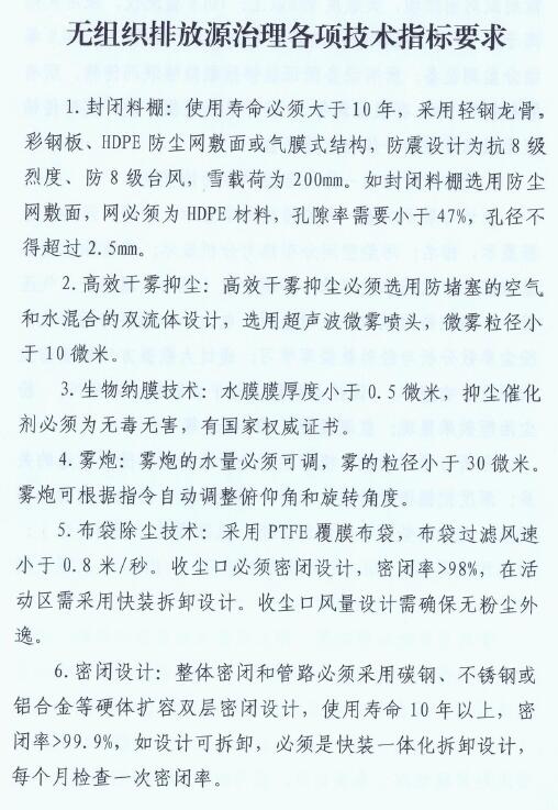 驗收標準:改造后,鋼鐵企業主要無組織排放源周邊1米處,顆粒物濃度小于5mg/m3;經收集處理后的顆粒物有組織排放濃度小于10mg/m3 。
