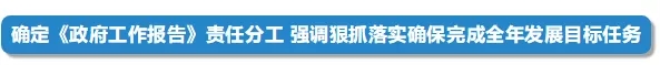 會議將《政府工作報告》提出的重點任務逐項分解,明確責任單位和時限,要求國務院各部門以對人民高度負責的精神,不折不扣抓好落實,奮力完成全年經濟社會發展主要目標任務。