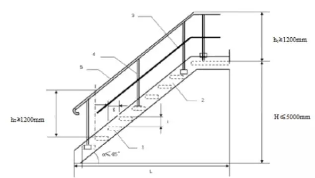 2、 監測平臺與墜落高度基準面之間距離超過2 m時,不應使用直梯通往監測平臺,應安裝固定式鋼斜梯、轉梯或升降梯到達監測平臺。梯子無障礙寬度≥0.9 m,梯子傾角不超過45度。每段斜梯或轉梯的最大垂直高度不超過5 m,否則應設置緩沖平臺,緩沖平臺的技術要求同監測平臺。