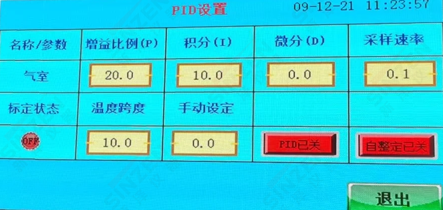 溫度PID自整定畫面應(yīng)該是PID已關(guān)按鍵變成綠色按健,PID已開為正常狀態(tài)。當(dāng)溫度到達(dá)180度設(shè)置值后,需要手動點擊一下自整定已關(guān)按鍵,變成綠色,自整定已開,經(jīng)過一分鐘后自動恢復(fù)紅色狀態(tài)。